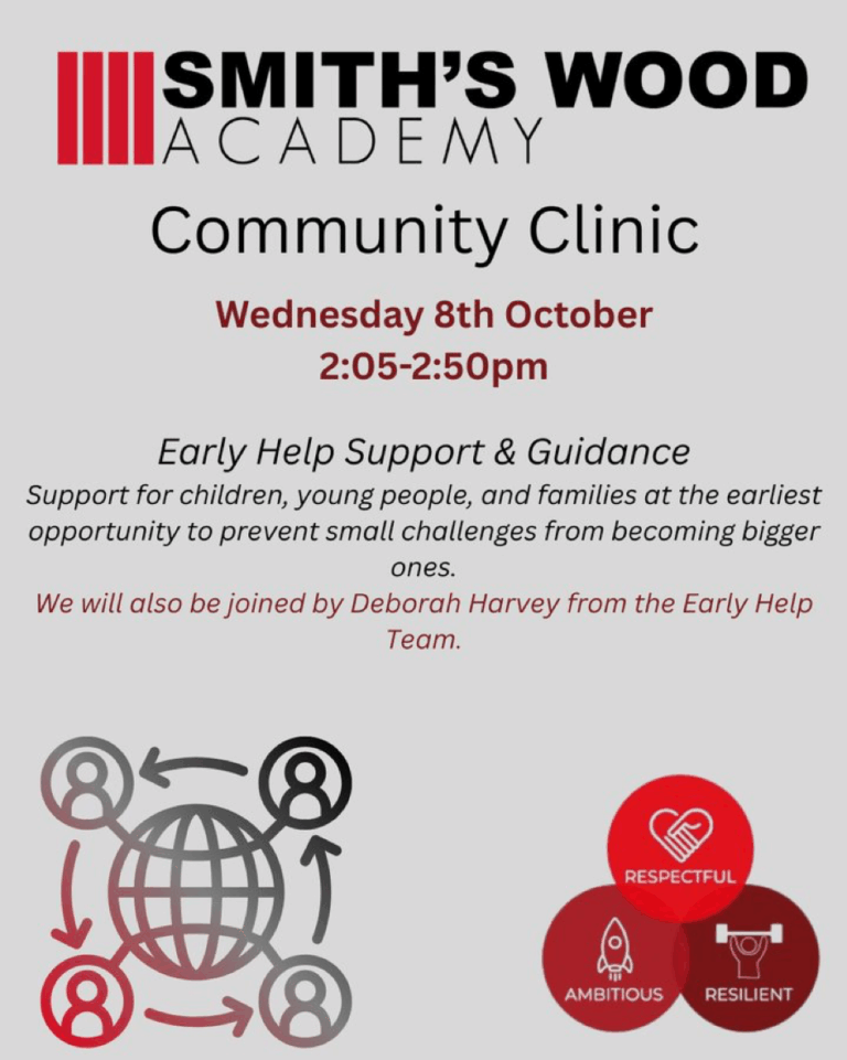 Come along to our next Community Clinic on Wednesday 8th October. An informative session on Early Help support & Guidance.