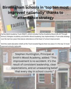 Smith’s Wood Academy has hit the news again with a fantastic story regarding improved attendance!